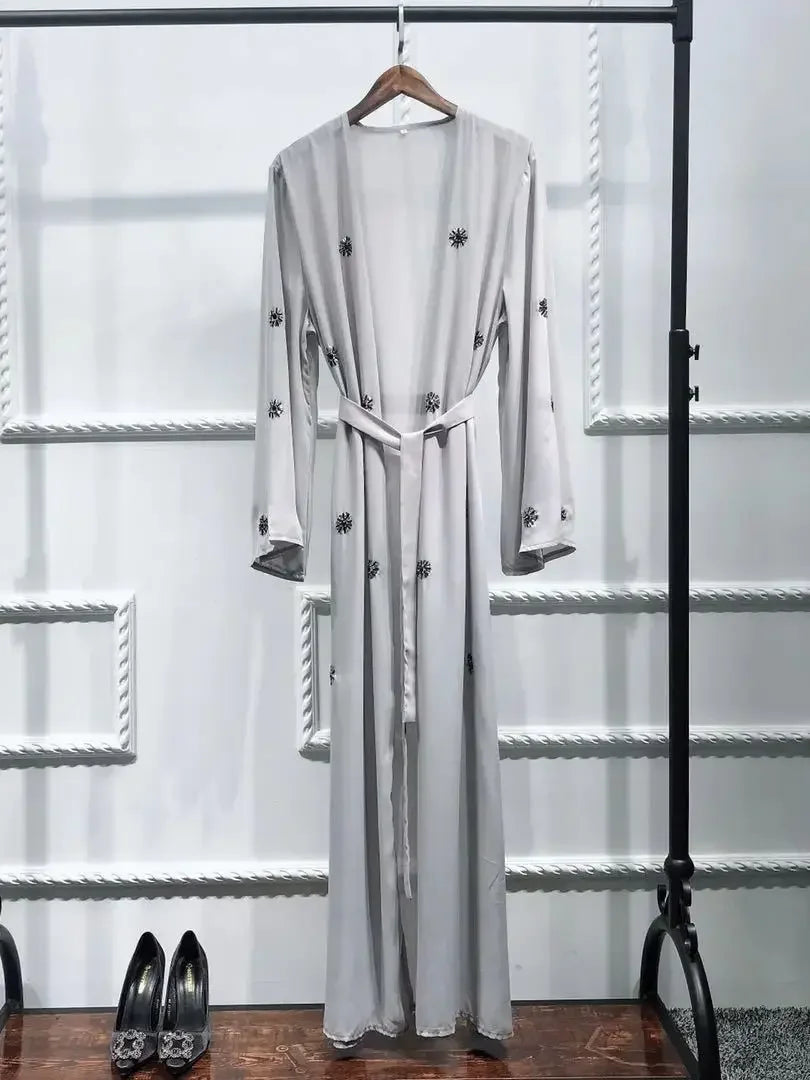 Add a touch of refined elegance to your wardrobe with the Abla Kimono Kaftan, a graceful abaya inspired by Dubai, Moroccan, Turkish, and Gulf fashion. Designed in a kimono-style silhouette, it features an open-stitch closure and a comfortable regular fit that drapes beautifully on the body. Crafted from lightweight chiffon with slight stretch, it offers ease of movement while maintaining modest coverage. Subtle diamond embellishments elevate the look, making it suitable for both casual wear and special gatherings. Ideal for all seasons, the Abla Kimono Kaftan blends cultural elegance with modern Islamic fashion sophistication.