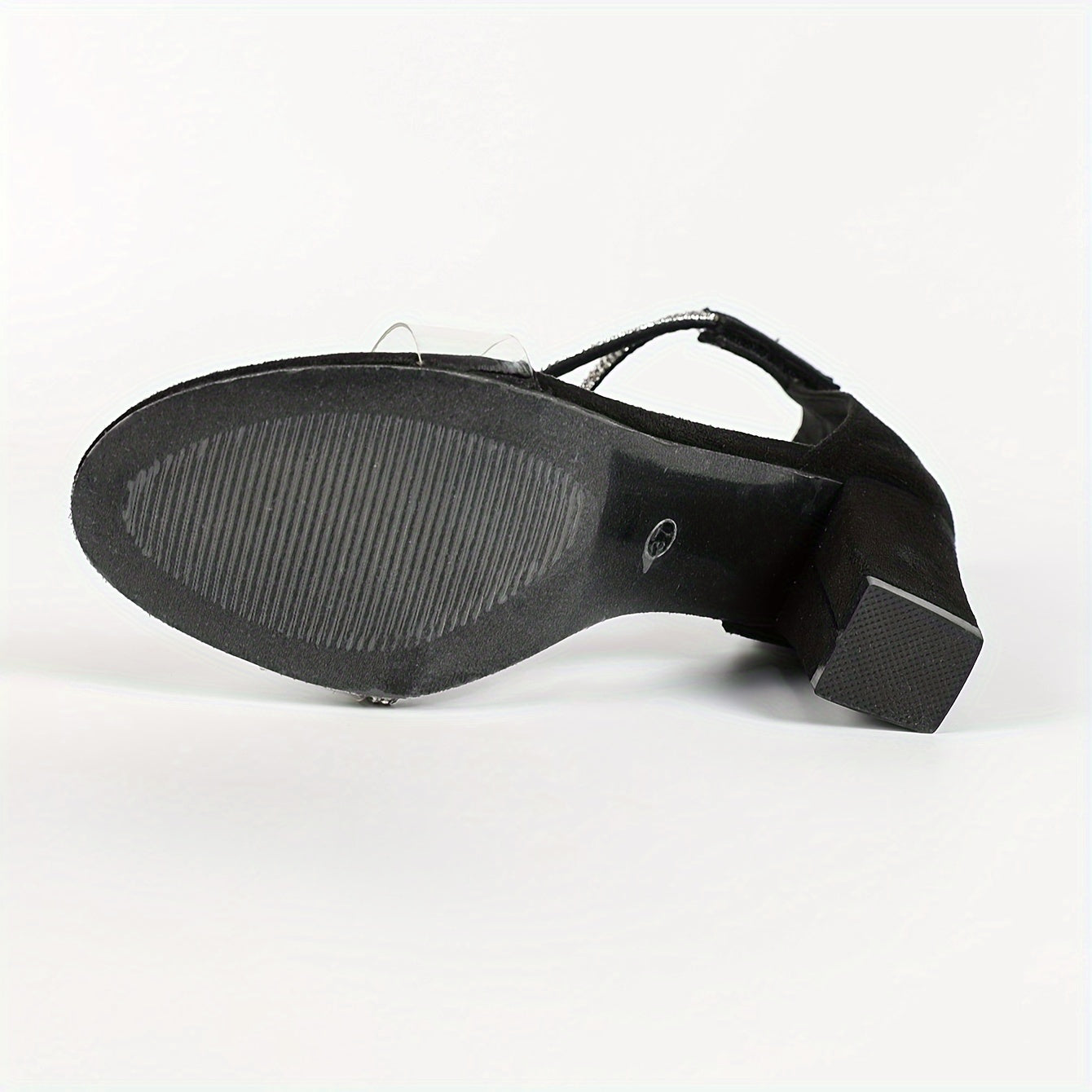 Add a touch of sparkle to your step with the Atlanta6 High Heeled Sandals — a bold and glamorous choice for the fashion-forward woman. Featuring a dazzling diamond-embellished one-word strap and a sturdy block heel, these thick-heeled sandals combine comfort and sophistication effortlessly. The round toe and hook-and-loop fastener ensure a secure, stylish fit, while the soft microfiber insole and breathable fabric lining keep your feet comfortable all day or night. Perfect for parties, date nights, or special occasions, Atlanta6 is your go-to sandal for standing out with confidence and flair in any season.