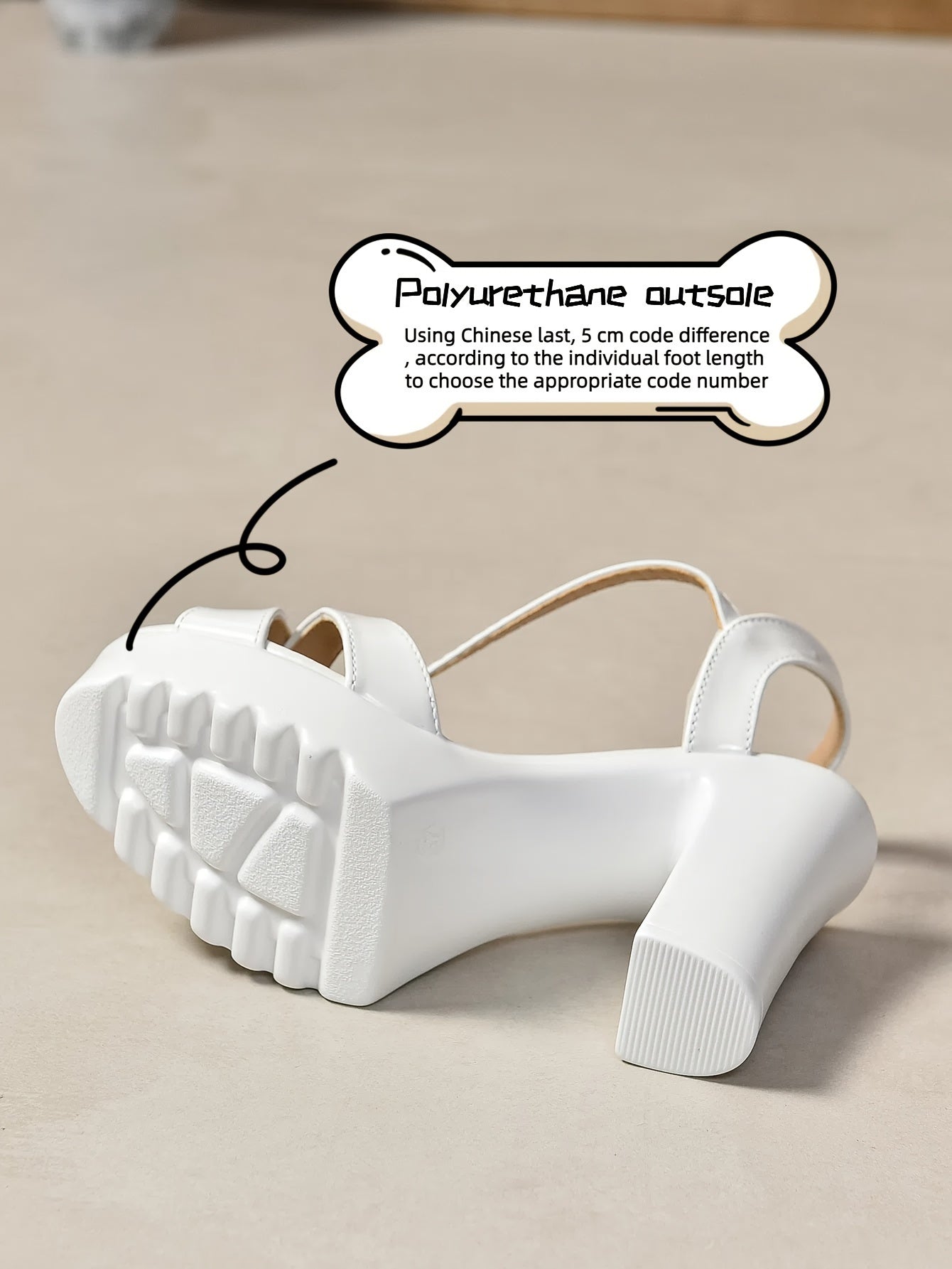 Step into timeless elegance with the Azza3 Peep Toe Platform Sandals — a sophisticated choice for any summer occasion. Featuring a sleek white faux leather finish, these ultra-high block heels combine fashion-forward design with all-day comfort. The open peep toe and supportive ankle strap enhance both style and stability, while the platform sole adds flattering height without sacrificing ease of wear. Crafted from durable man-made materials with a minimalist aesthetic, these sandals are perfect for weddings, parties, or dressing up your everyday look. With Azza3, elevate your style with confidence and grace.