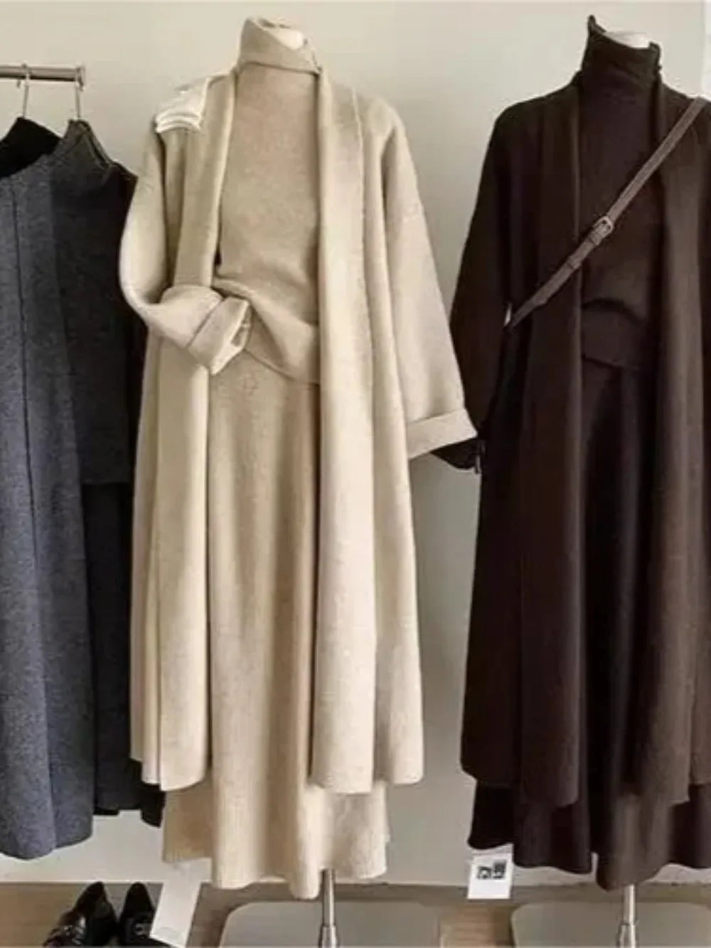The Graciana 3PCS Set is a stylish and modest outfit designed for elegant comfort. This three-piece ensemble features a waistcoat, knitted cardigan, and long skirt, creating a sophisticated layered look ideal for autumn and winter. Made from soft polyester with slight stretch, it offers warmth, flexibility, and all-day comfort. The open-stitch cardigan adds a graceful flow, while the regular fit ensures a flattering silhouette for all body types. Perfect for casual outings or modest gatherings, the Graciana 3PCS Set embodies the essence of modern Muslim fashion, blending practicality, refinement, and timeless style inspired by Moroccan elegance