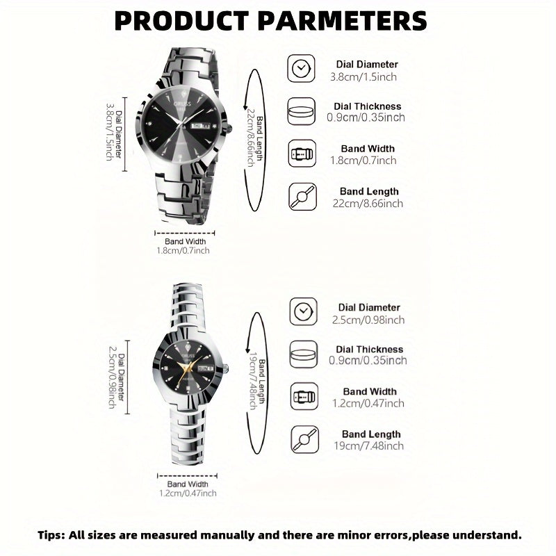 Featuring a non-rechargeable button battery, this set is designed for long-lasting performance without the hassle of frequent charging. Whether as a gift for a loved one or a matching accessory for couples, these watches symbolize timeless elegance and togetherness