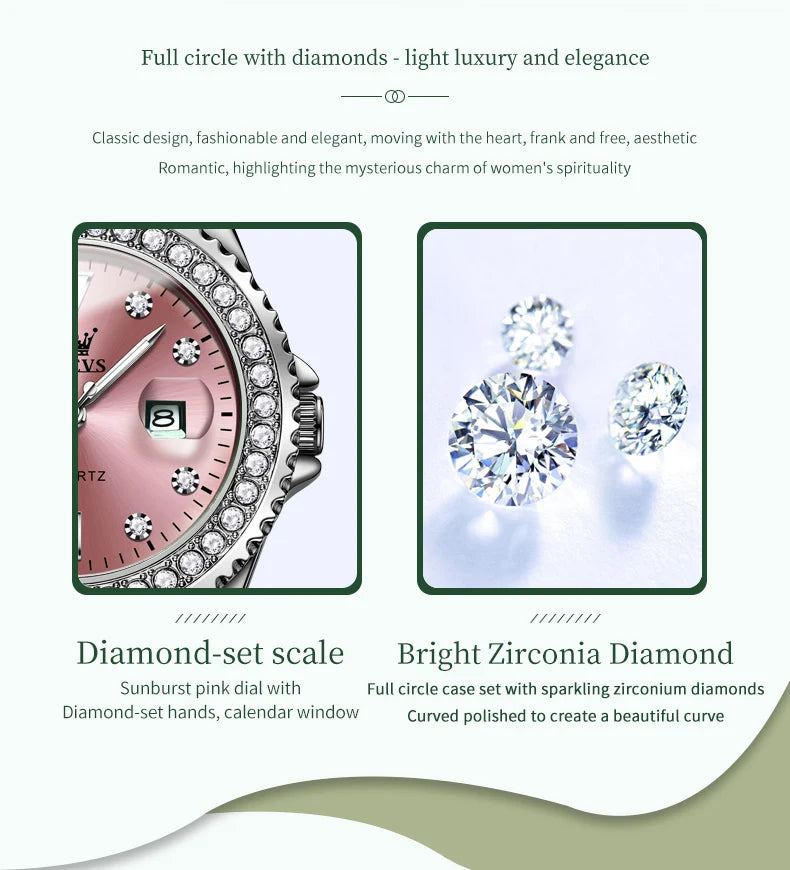 OLEVS 9945 Luxury Diamond Quartz Watch – Timeless Elegance for Women