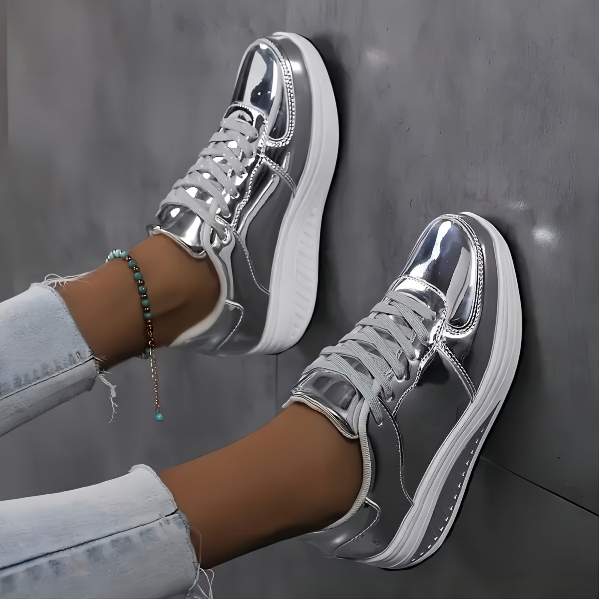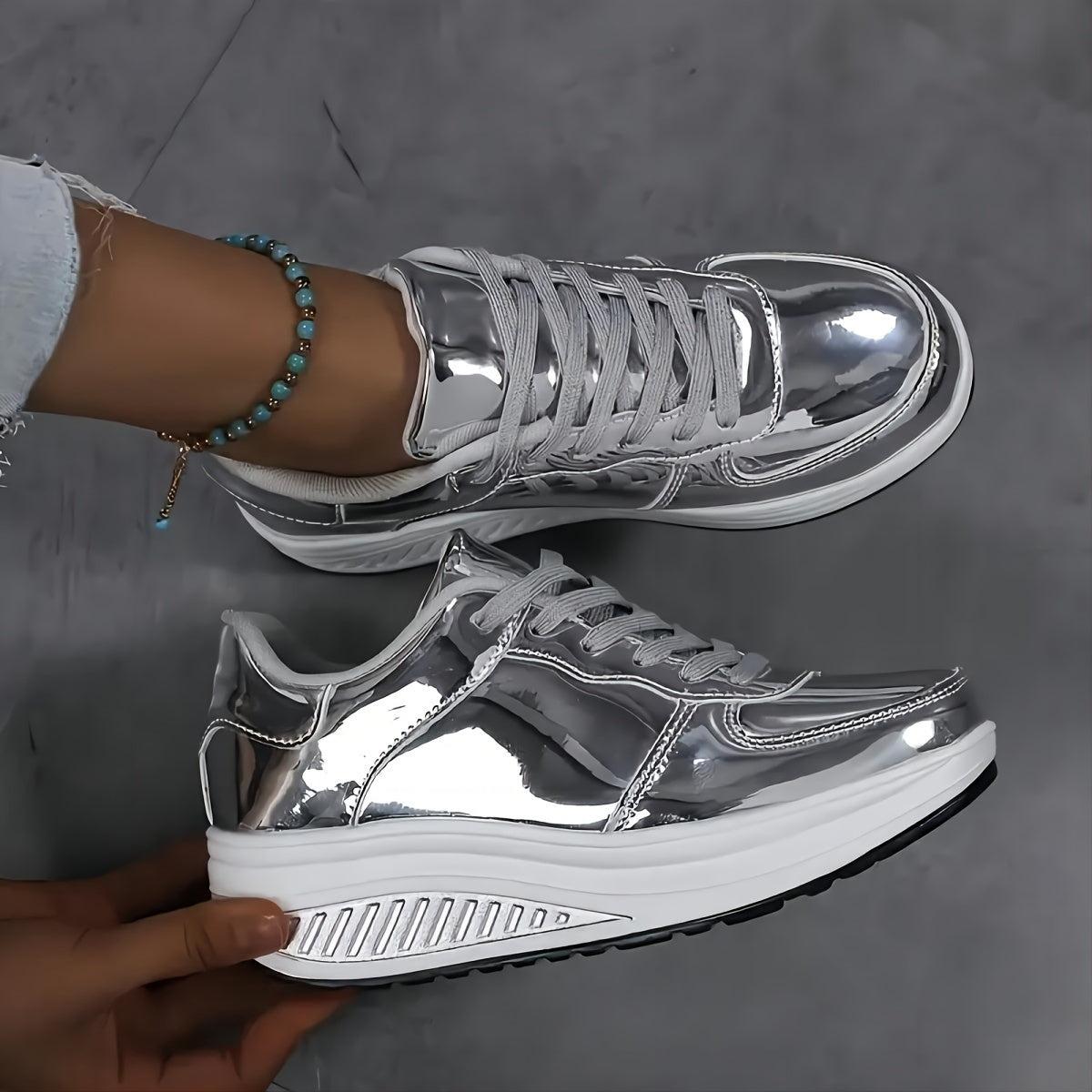 Shine with every stride in the Roxani Golden Running Shoes — where sporty design meets elegant flair. These all-season women’s sneakers feature a sleek, glossy golden finish and a height-increasing sole, blending fashion and function effortlessly. Crafted with breathable mesh lining and motion-control support, they offer superior stability and comfort for outdoor jogging or everyday wear. The lightweight PU sole ensures durability and flexibility, while the solid color design adds a touch of sophistication. Whether you're on the track or on the go, Roxani shoes give you a confident boost in both style and stature. Perfect for the modern, active woman.