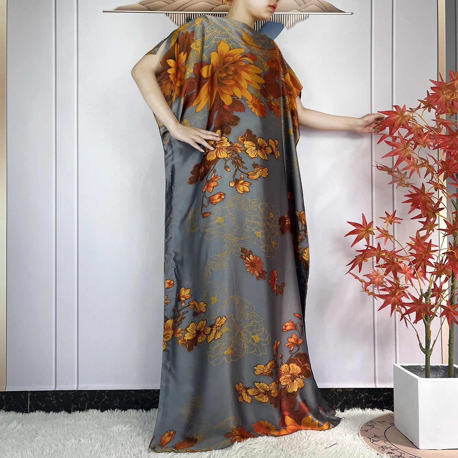 Step into summer elegance with the Safia Dress, a graceful blend of Dubai-inspired fashion and modern modest style. Designed with a loose, flowing silhouette, this maxi dress offers effortless comfort and refined coverage for warm days. Crafted from soft, lightweight silk, it feels smooth on the skin and drapes beautifully, making it ideal for casual outings and relaxed gatherings. The printed design adds a vibrant, feminine touch, while the pullover style ensures easy wear. Available in six elegant colors and perfectly paired with a turban, the Safia Dress delivers airy comfort and timeless summer sophistication.